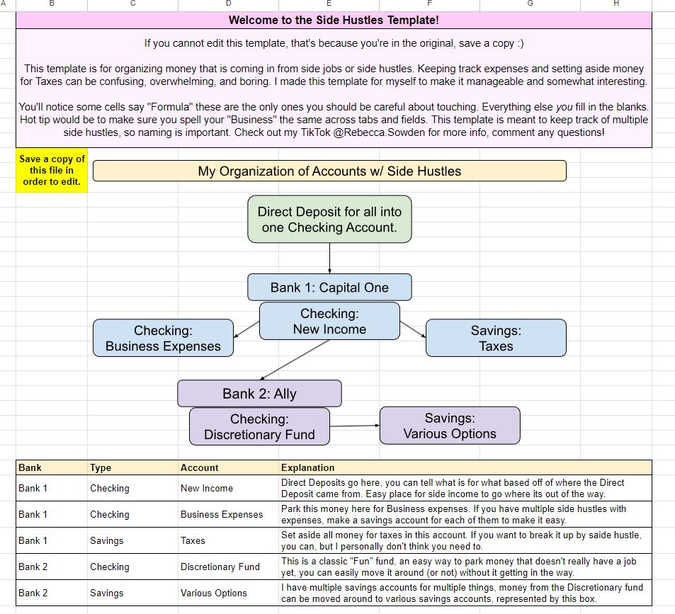 This template is 100% something you can make for yourself, but if you’d like to just use mine here is the link to purchase it: My Side Hustles